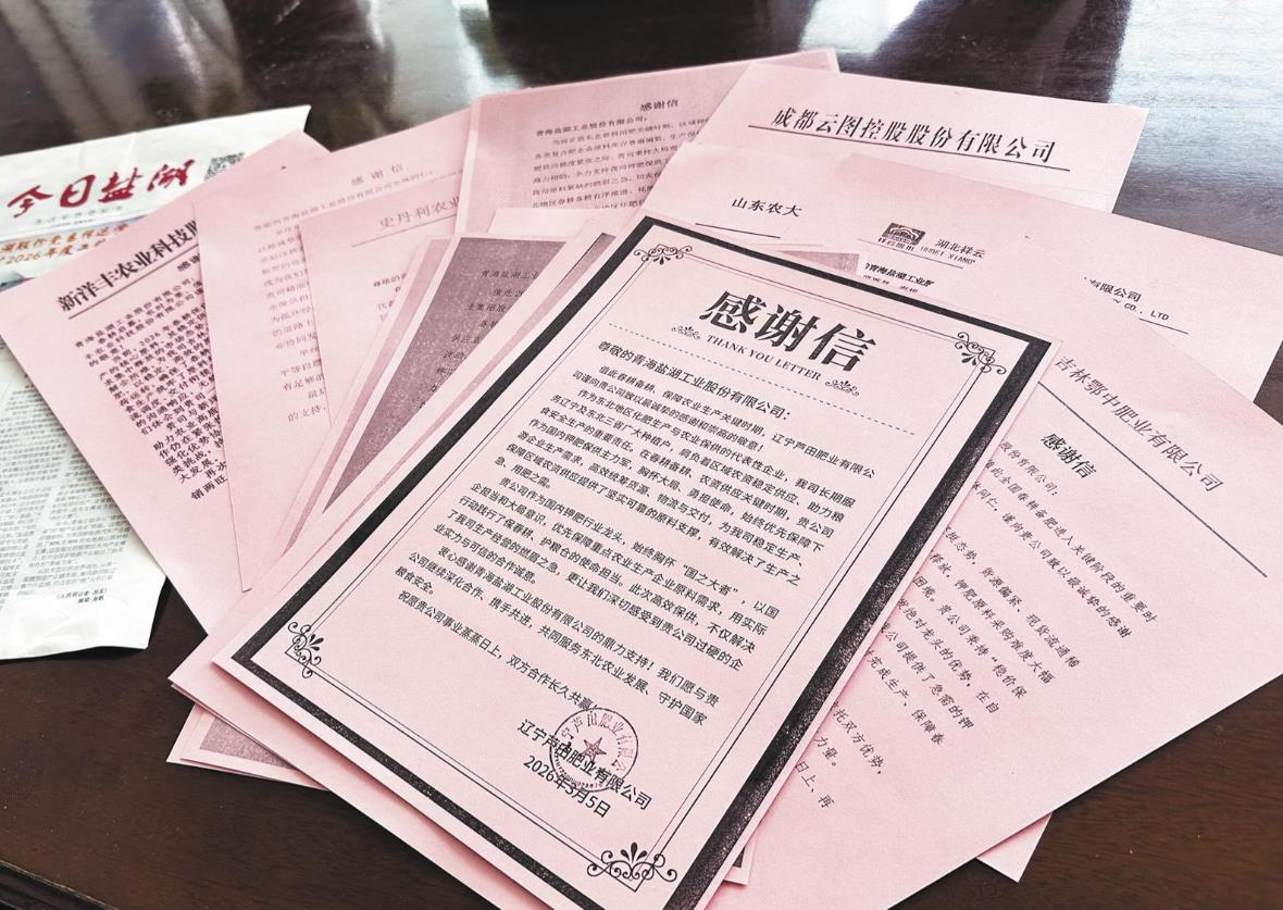 正是无数盐湖人的坚守,汇聚成感谢信中那些滚烫的话语。每一封信件的背后,都是一家企业的生存命脉,也都关联着千里之外的万顷良田和在此之上耕耘的人们。